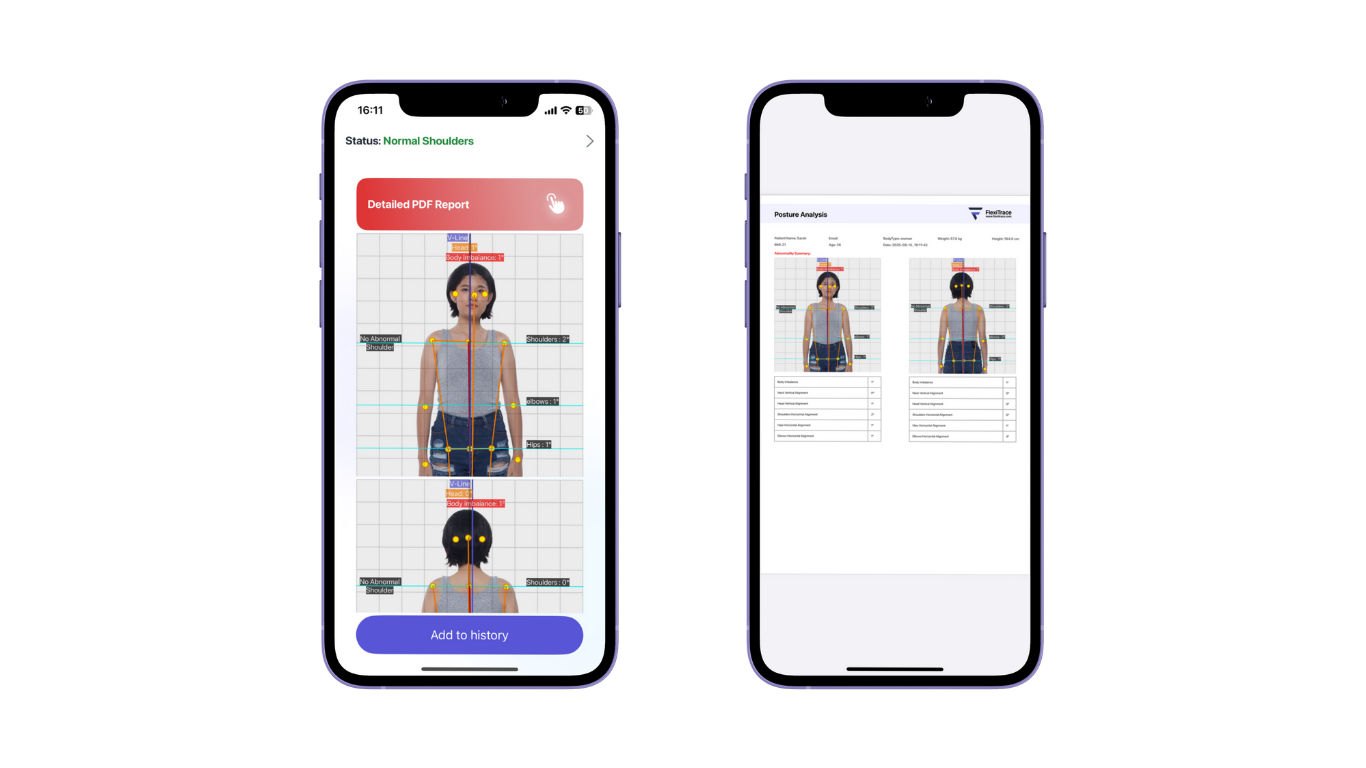 Flexitrace Posture Analysis offers an advanced tool for the detection of postural abnormalities, classified into four distinct categories, generating a detailed corrective plan from a single input image.